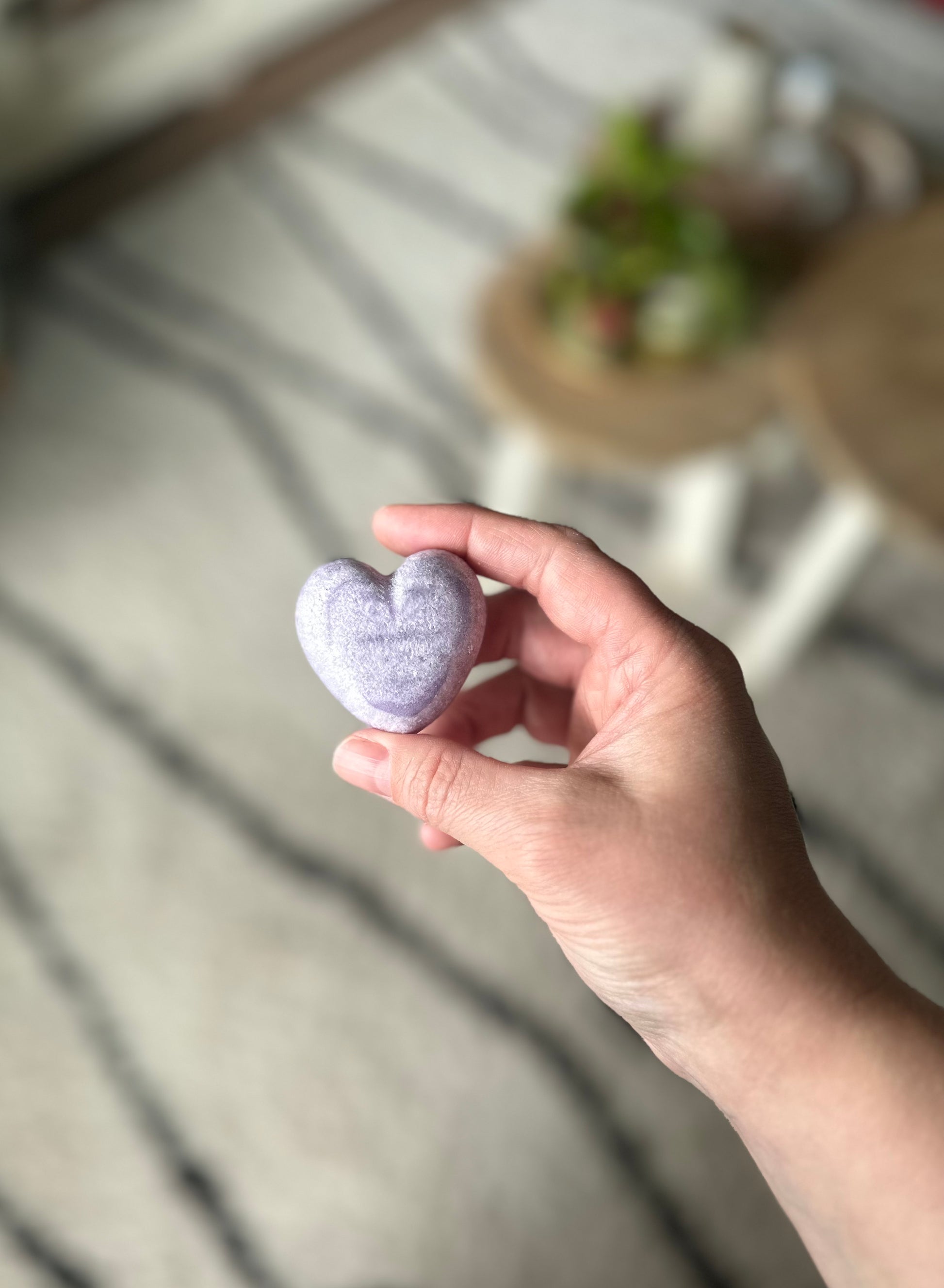 Het amberblok hartje LAVENDEL heeft een sterke bloemige geur van zomerse lavendel.