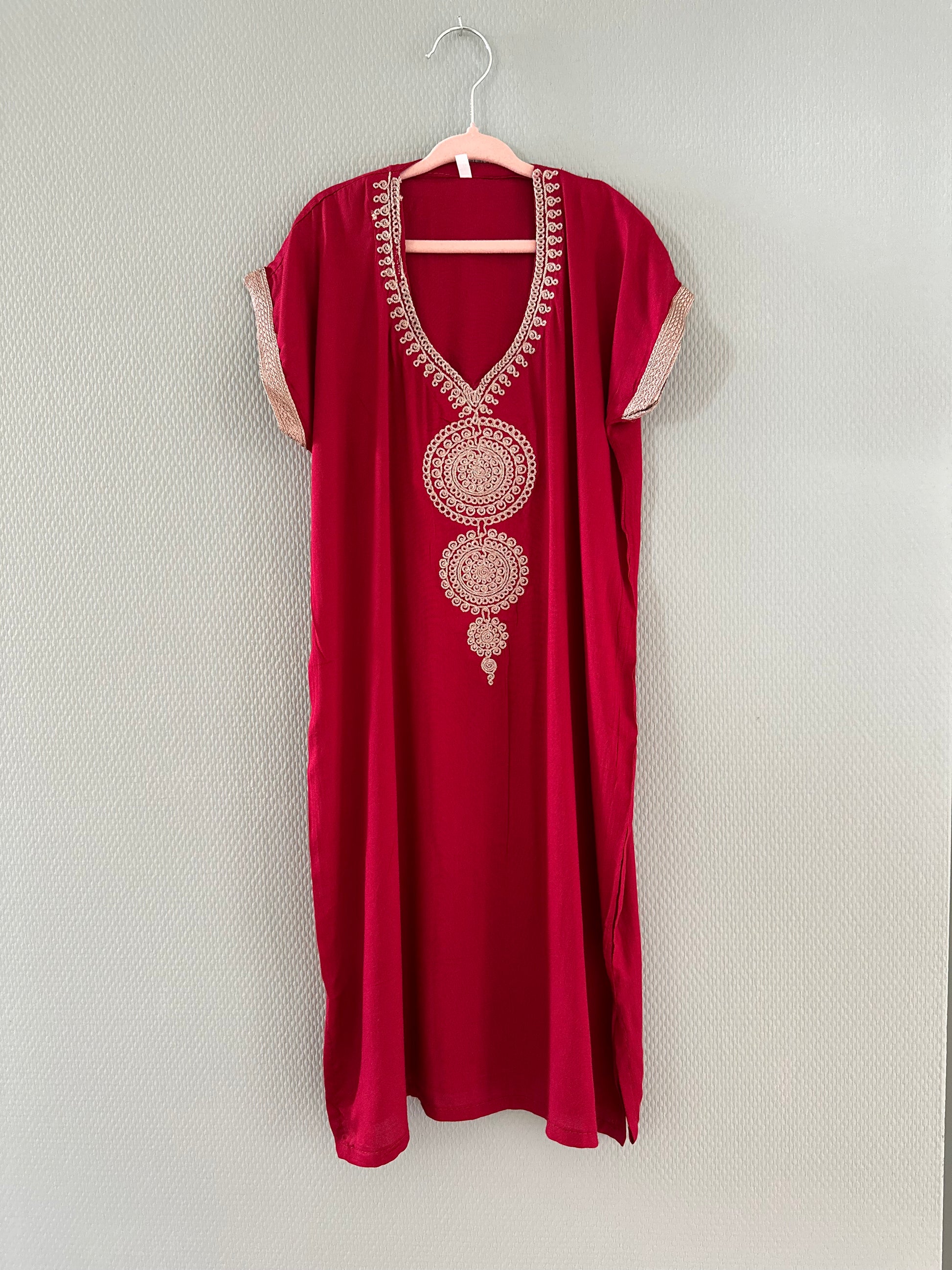 Marokkaanse huisjurk. Door de dunne stof is deze jurk heerlijk te dragen op warme dagen. Ook handig om over je zwemkleding heen te dragen.