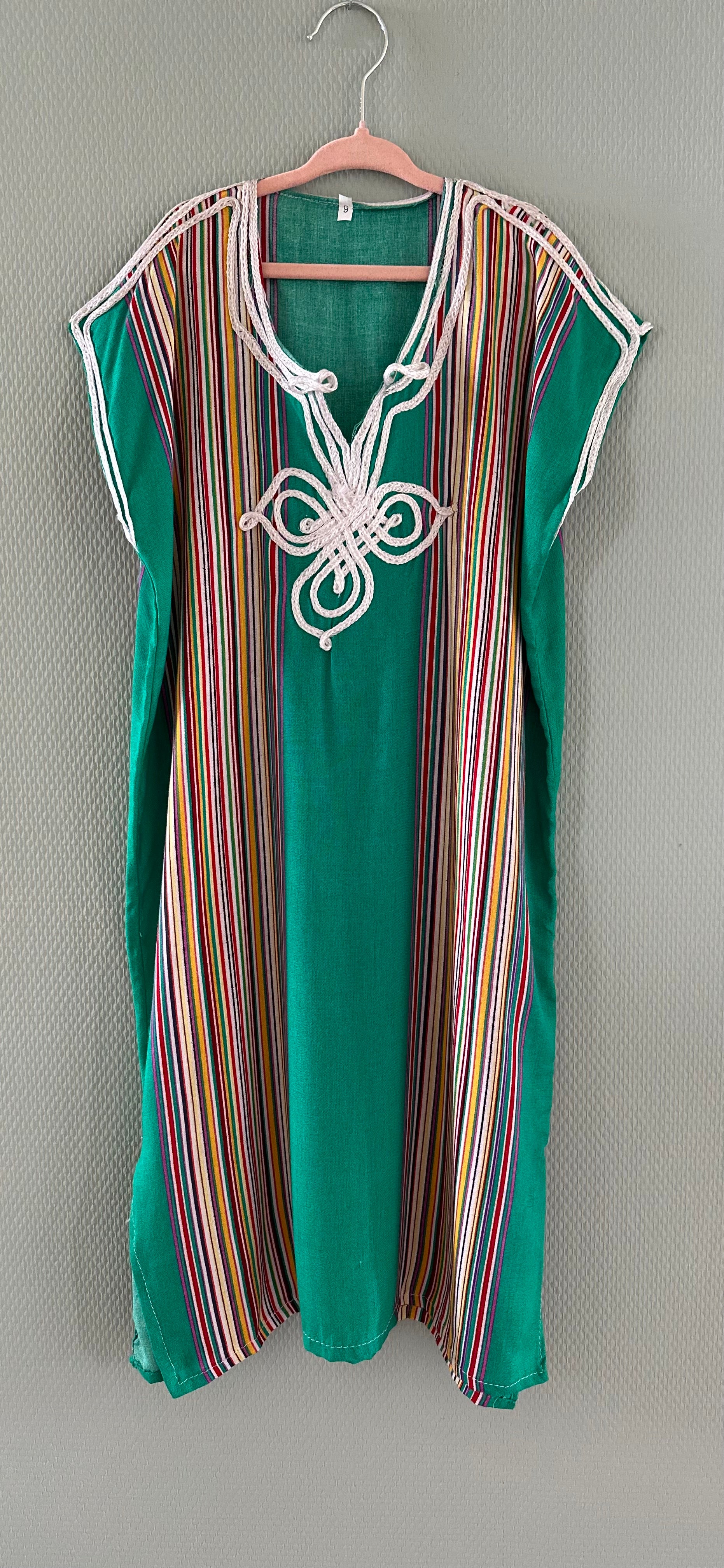 Soepele en luchtige jurk, ideaal voor de warme dagen. Heerlijk om thuis te dragen, over je badkleding of als pyjama.