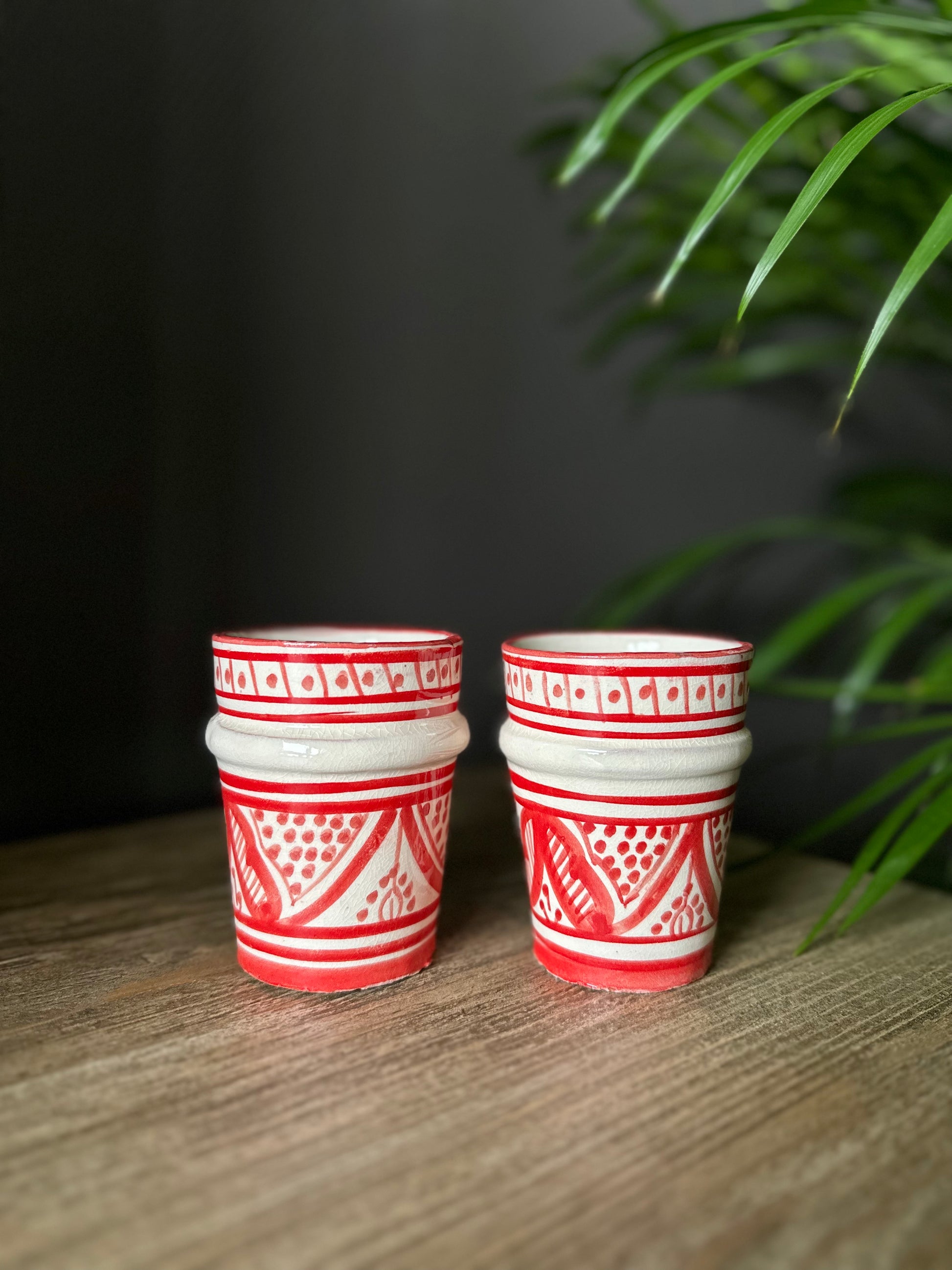 Deze aardewerk mokjes zijn met de hand gemaakt en beschilderd. Elk item is uniek dus er zal altijd iets verschil in zitten.