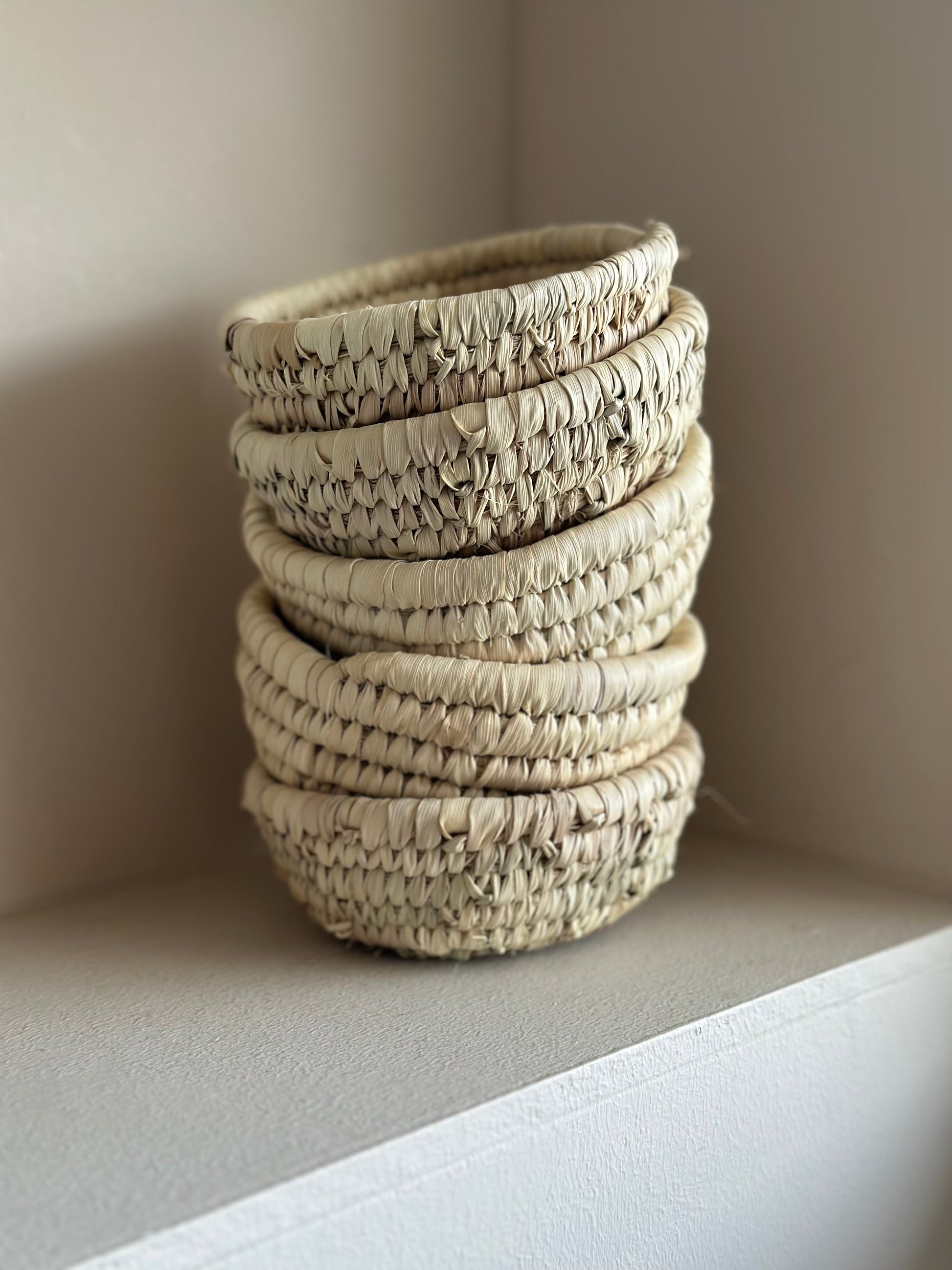 Schaaltje van gevlochten palmblad met een doorsnee van ongeveer 13 cm. In Marokko met de handgemaakt door ambachtslieden.