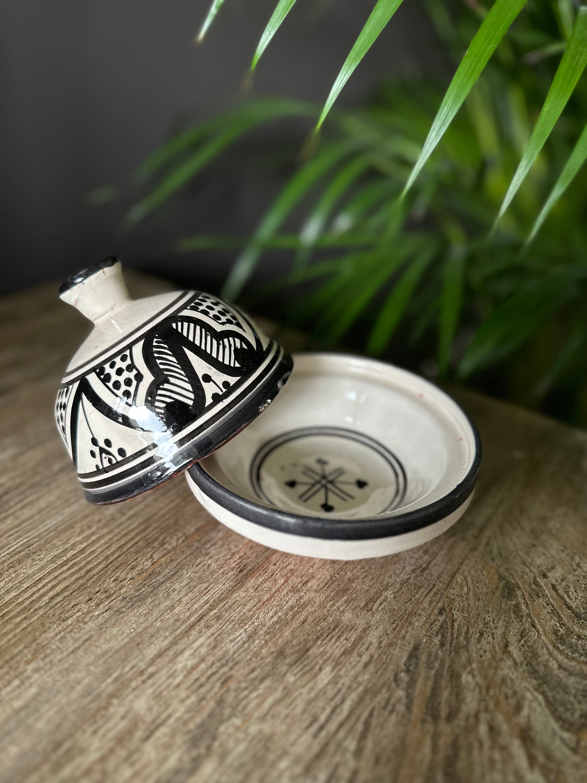 Deze van aardewerk gemaakte tajine is met de hand gemaakt en beschilderd. Hierdoor is elk item uniek. Je kunt deze tajine gebruiken ter decoratie of gebruiken om kleine dingen in te doen bijvoorbeeld: suikerklontjes, honing, olie of kleine koekjes of snoepjes.